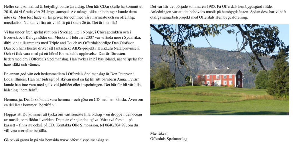 25årsjubileumsskivan Inspelad 2010 i Ede föreningshus, Kaxås bygdegård och Offerdals kyrka: