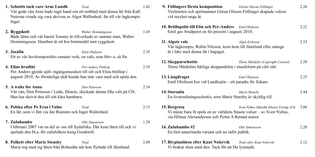 En liveinspelning tillsammans med Östersunds folkdansgille. Inspelad 5 Maj 2001: